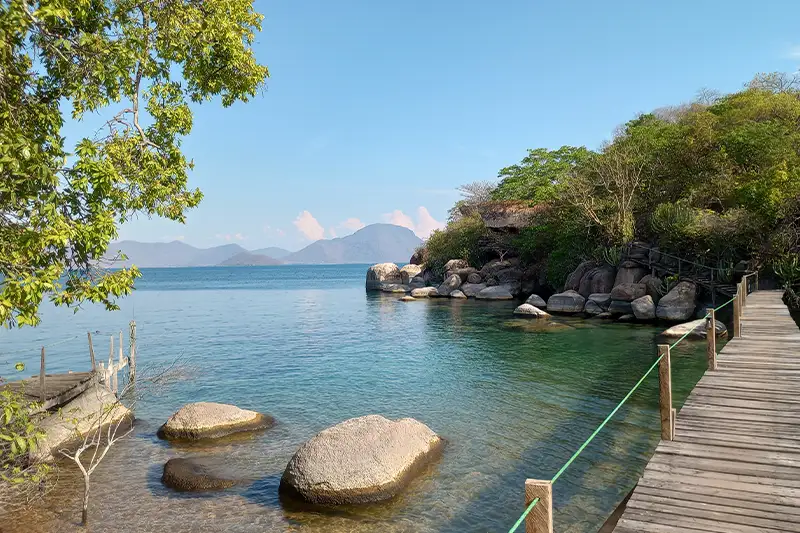 Lassen Sie die Tierwelt des Liwonde NP hinter sich und fahren Sie nach Cape Maclear. Dieser kleine Ferienort liegt am Südufer des Sees an der Spitze der Nankumba-Halbinsel im Lake Malawi National Park. Goldene Sandstrände und türkisfarbenes Wasser machen diesen Küstenort zu einem malerischen Ort.